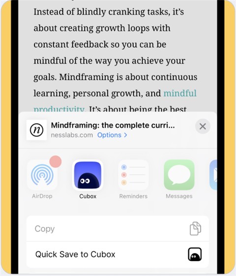 -发送网页:在浏览器或其他App中,通过系统共享按钮将网页发送到Cubox。