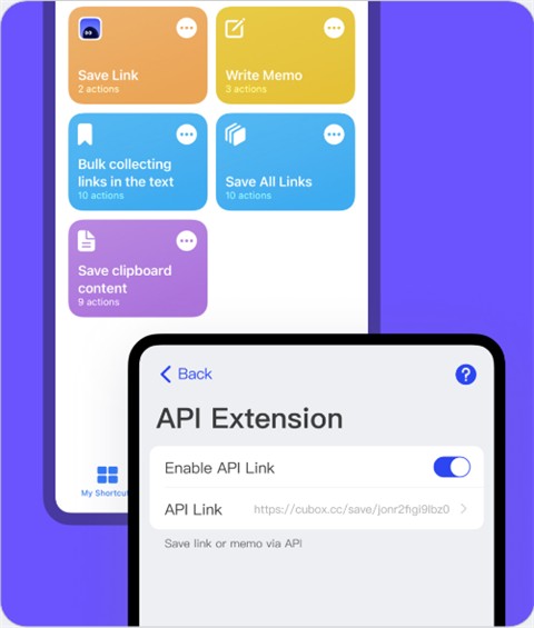 -更多方式:Cubox还支持快捷指令、API等多种收藏方式,满足你在不同平台上的收藏需求。