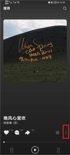 1、在汽水音乐中,打开软件就会进入到歌曲的播放界面,在界面中点击下方的【...】;