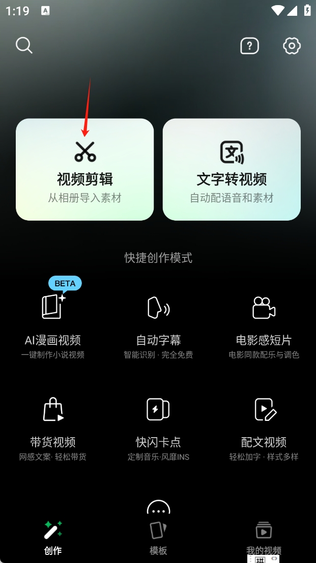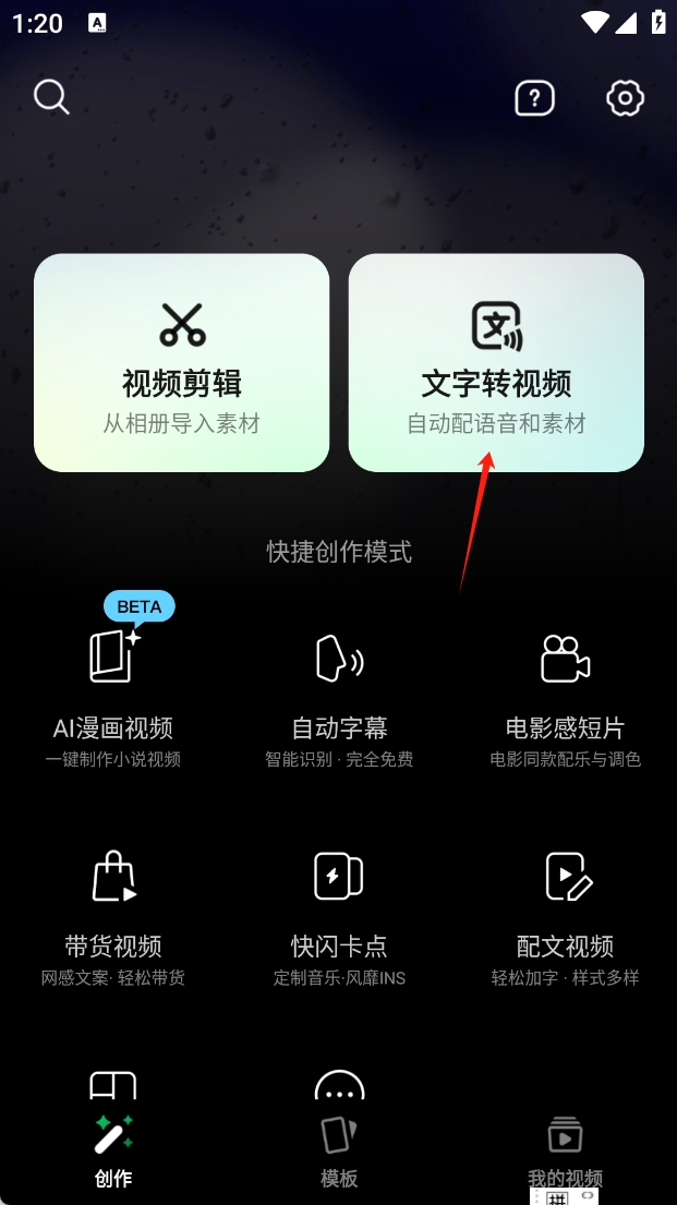 3、文字成片:在首页选择“文字输入”功能,键入文案或录制语音,App自动生成关联画面,用户可替换素材或调整风格。