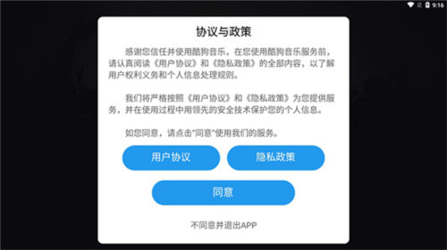 1、下载安装本站提供的酷狗音乐车机版,进入软件后需要同意用户协议;