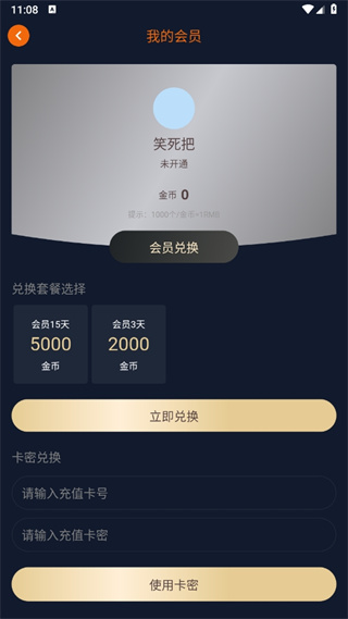 2、根据自己的需要选择会员兑换或者是使用卡密登录。