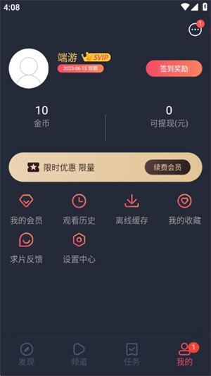 3、通过看短暂的广告,我们就可以领取会员了,然后选择要缓存的内容。