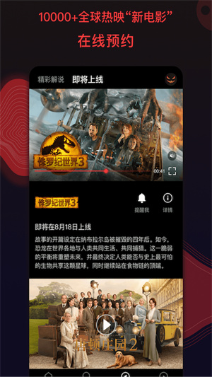 1、独家首映电影:还会和其它厂商合作活动,用户们可以提前观看热门大片、首播剧集,提前享受高清电影。