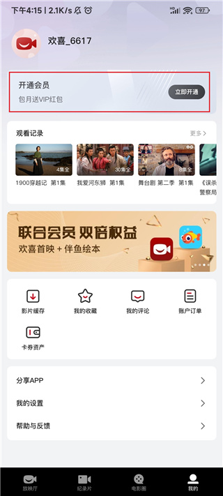 7、选择“我的”,有需要的朋友可以在这里开通会员观看更多精彩作品。