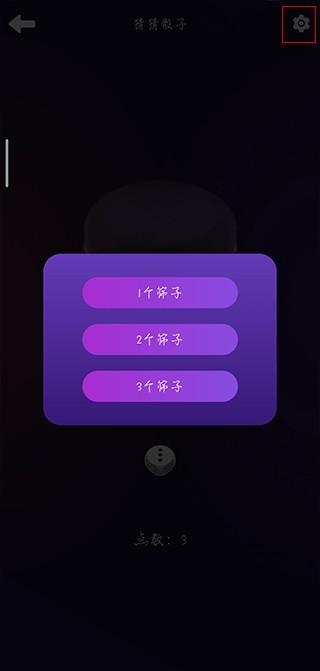 3.设置游戏参数: 在游戏开始前或游戏过程中,你可以点击屏幕上方的齿轮设置图标,来调整游戏的相关参数。以“猜骰子”为例,你可以在这里设置使用几个骰子进行游戏,以及其他可能影响游戏进程的参数。