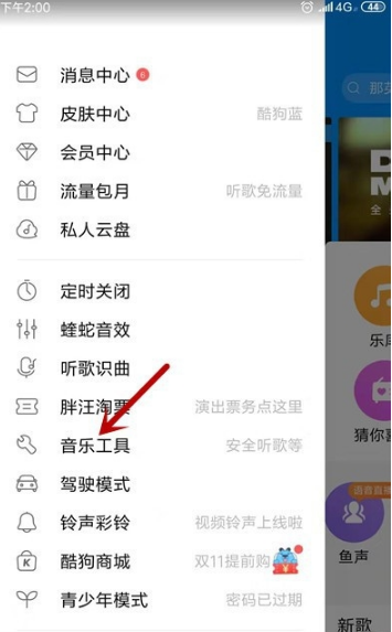 1、点击打开酷狗音乐app,然后点击页面左上角的三横图标。