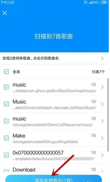 5、扫描完之后点击页面下面的“添加本地音乐”。