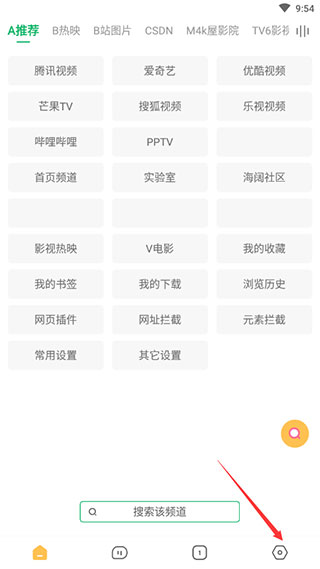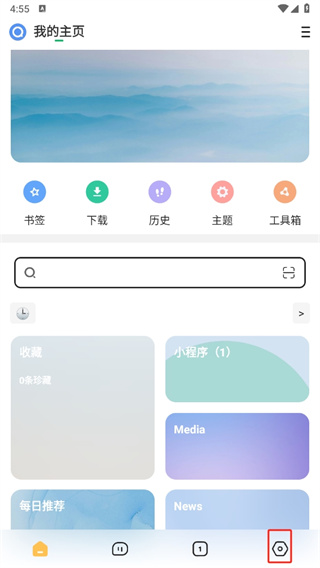 1、首先打击海阔视界软件,进入到首页中后我们可以切换到不同的页面中,在这里点击右下角的【设置图标】;
