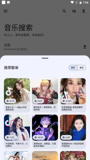 1、首先打开音乐搜索app免费版,然后点击上方歌单按钮;