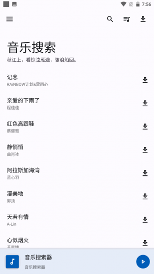 1、音乐搜索app免费版界面设计清新,易于操作,提供了优质的使用感受。