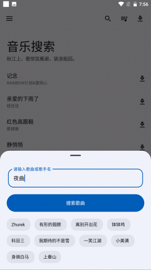 1、打开音乐搜索app免费版,点击上方搜索按钮,输入要下载的音乐名;