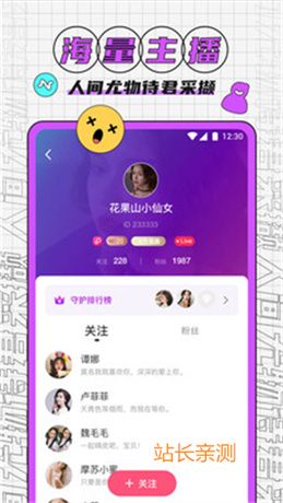 花丛直播app下载是一款精彩的直播软件,各种类型视频直播节目你都可以在这里看到,满足你所有的直播观看需求,而且关注自己喜欢的主播,每次开播都能及时进入平台和她进行互动聊天对话,可以帮助用户寻找属于自己的邂逅,线上遇见各位令人心动的美女主播,快来本站下载使用吧。