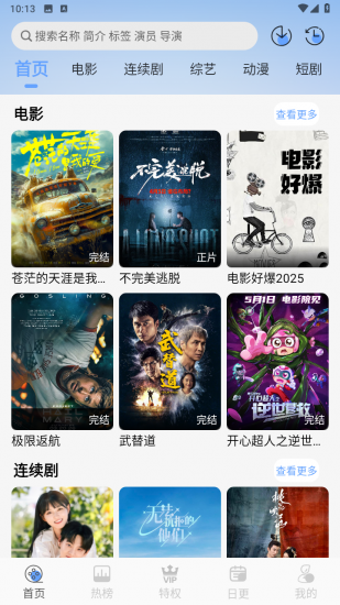 开心视频app纯净版是一款非常出色的手机追剧软件,软件不仅拥有简洁直观的界面设计,而且还有着简单便捷的操作方式,再配上强大实用的搜索引擎,让用户可以快速浏览或搜索出自己感兴趣的影视作品。软件为用户提供了五大类型的影视作品,分别是电影、连续剧、综艺、动漫以及短剧,并内置对应的类型分区,以便用户寻找对应类型的影视作品,甚至用户还可以在类型分区中再次对所有的影视作品进行题材、年份、地区等筛选,从而进一步缩小影视作品的寻找范围,提高用户的寻找效率。此外,开心视频app纯净版还内置了观看历史区域,该区域不仅会记录用户看过的影视作品,还会记录这些影视作品的播放进度,以便用户进行续看。