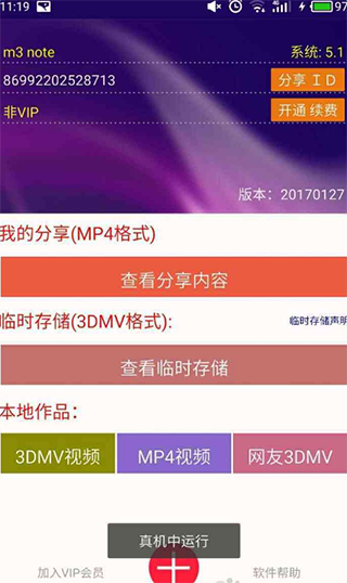 打开幻影3D app,首先进入个人中心。这里会自动识别你的手机型号和系统程序,并展示手机分享格式、临时储存格式及不同文件格式的本地作品信息。在正式开始制作视频前,你可以切换到“秀场”页面,欣赏其他用户用这款软件制作的精彩3D视频,从中获取灵感。