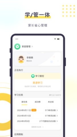 数育帮孩子端是一款培养孩子自律能力的软件。在软件上具有非常多的强大的功能,可以将孩子端与家长端进行相互的连接,可以很好的帮助孩子们进行自己的管理,培养孩子们的自律能力,对于手机使用时间的管控,而且软件上还可以进行学习,具有老师帮助孩子们进行辅导。