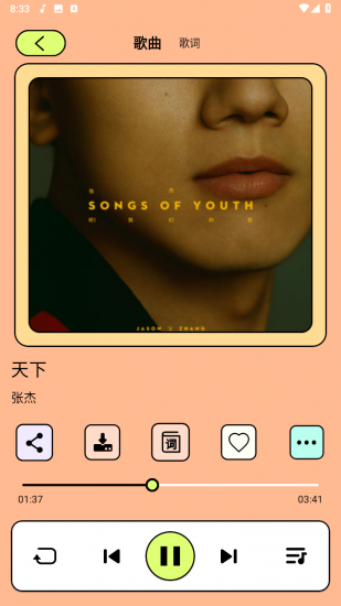 2、歌词显示:提供歌曲歌词显示功能,让用户更加沉浸式地享受音乐。