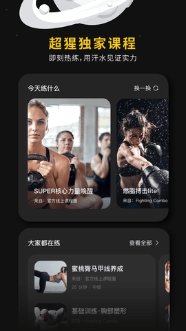 专业的健身应用软件,为你带来很贴心的健身指导服务,能够贴心指导用户进行健身锻炼,让你拥有更健康的身体,能够不断提升用户的身体机能,还有专业的健身教练在线指导,根据每个人的特点制定针对性的健身课程,帮助大家快速瘦身,拥有完美健康的身材,非常轻松方便,大家在平台上能够获得更加高效的运动,帮助自己健身!根据自身信息打造健身方案,帮助用户更好的锻炼,打造健康的运动环境。还能分享日常打卡训练,互相监督。