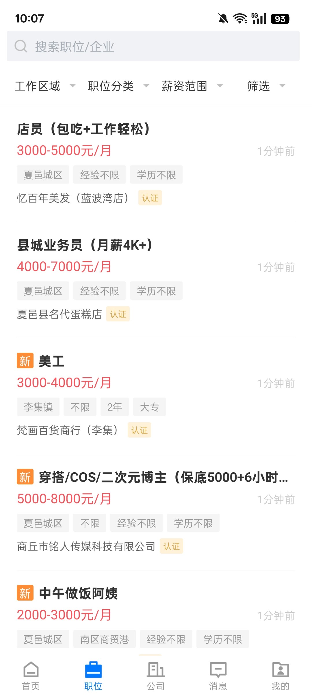 求职者可以在应用中搜索并浏览夏邑地区的大量招聘岗位,涵盖各行各业、各种类型的工作机会。