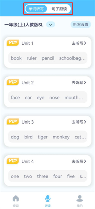 4.单词听写:提供个性化的听写模式,帮助孩子巩固单词拼写和记忆。