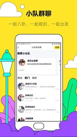自由查看附近和热门群聊小队,了解组队旅游信息,便于选择性加入,旅行更畅快;