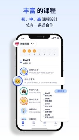 选择完需要学习的语言,还需要选择学习等级,包括:初级、中级、高级、精通等。