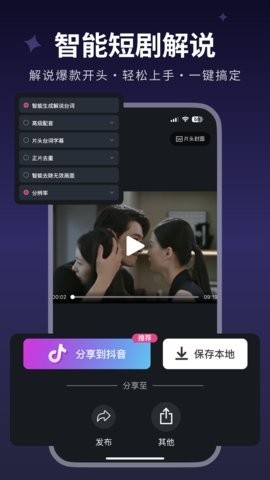 1、会自动识别图片中最重要的部位以及可视化的音乐编辑,帮你制作成精彩的视频MV音乐相册(MP4格式),只需一键式,只需短短十几秒完成。