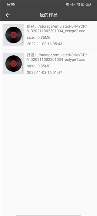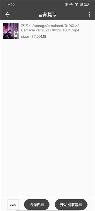 提取成功后,点击确定按钮,应用会展示已提取的音频文件。