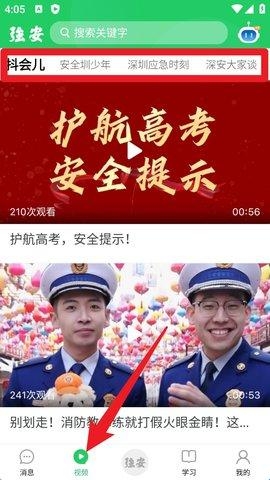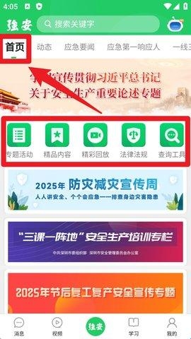 2. 点击底部导航栏中的「视频」按钮,会跳转至短视频专区,可浏览各类安全提示与应急宣传短片。