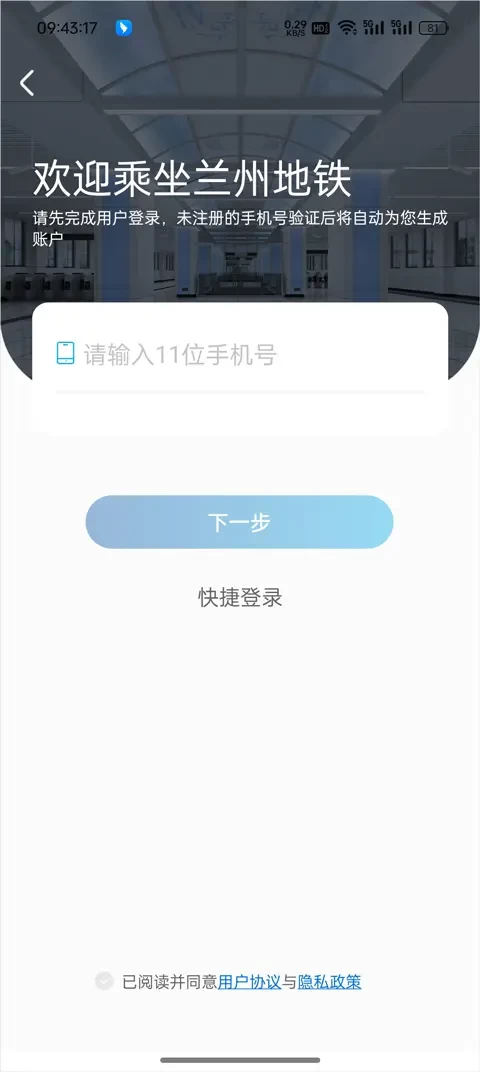 打开兰州轨道App,新用户需使用实名验证的手机号码进行注册,并登录账号。