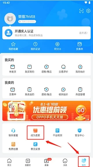 2.成为卖家:登录后,在App的【我的】界面里找到并点击“成为卖家”选项,然后选择“成为个人卖家”。
