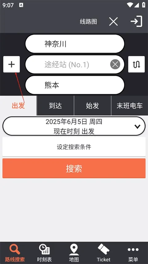 如果需要途经某个站点,可以点击“+”号来添加途径站,以便优化你的路线。