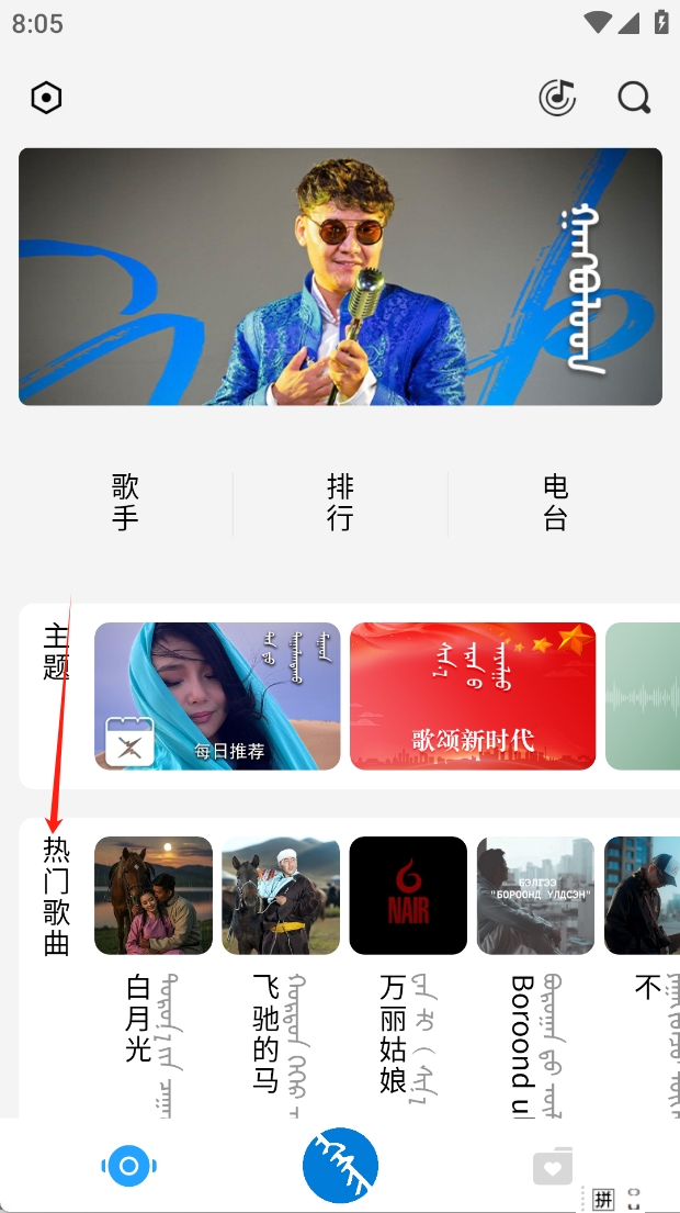 1、打开应用后,点击“热门歌”查看当前热门歌曲。
