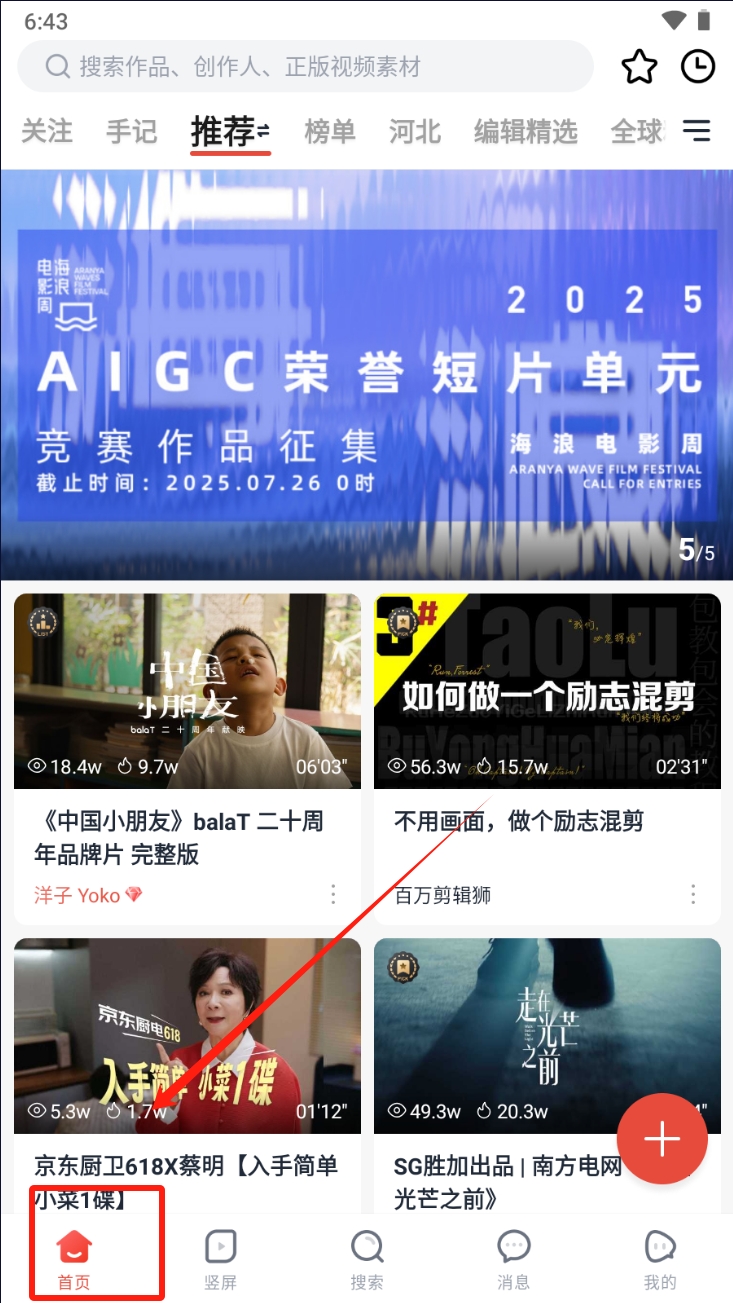 1、在首页点击“推荐”查看平台推荐的视频内容,发现感兴趣的视频。