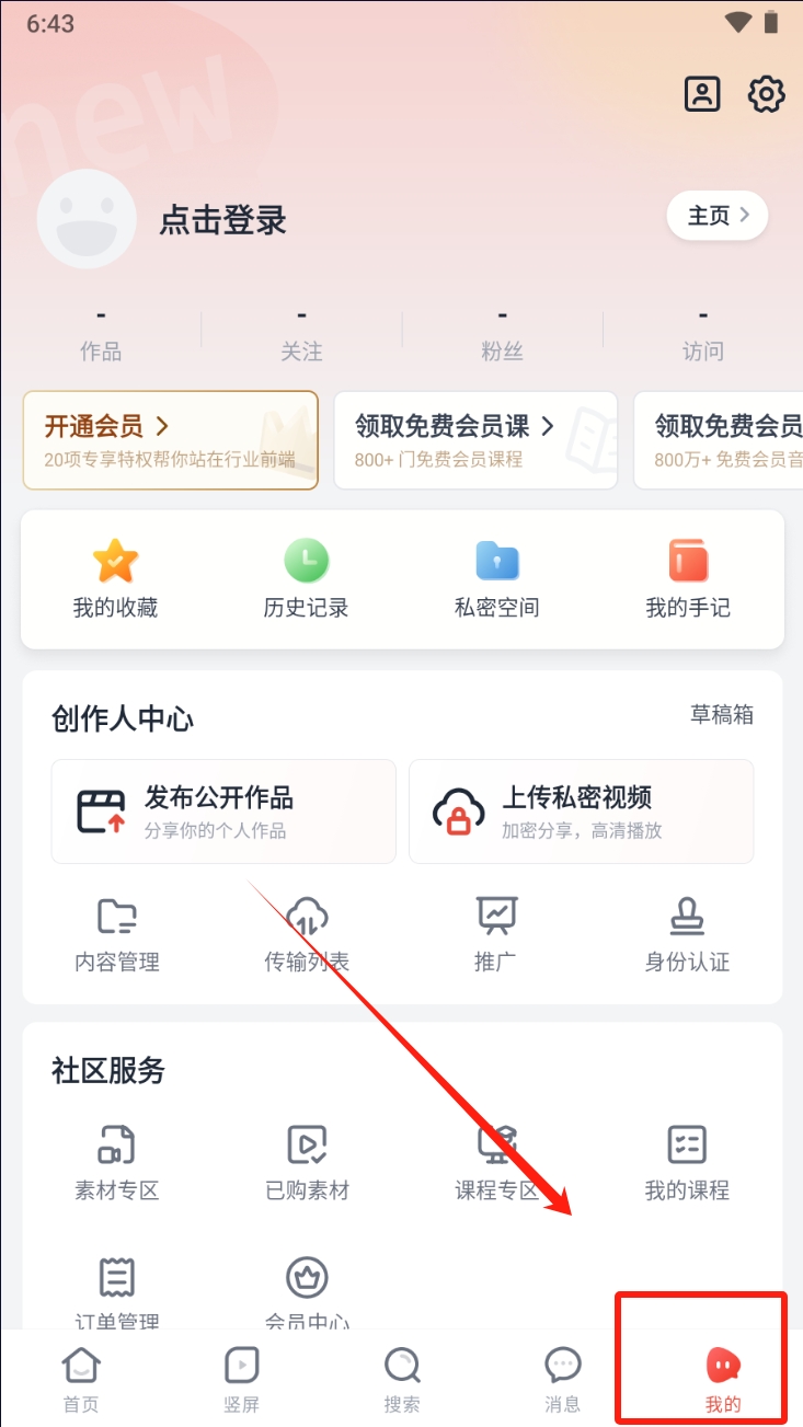3、在“我的”页面管理个人信息,包括发布作品和查看课程专区。