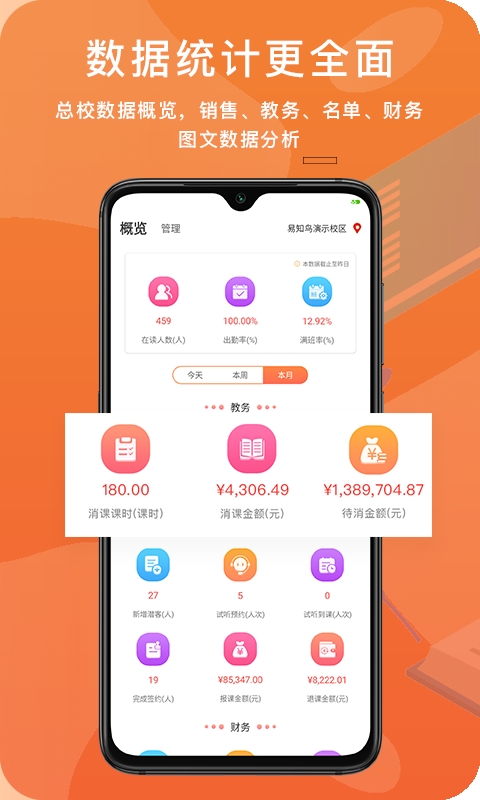 3、移动办公:各岗位日常工作更便捷,随时随地掌控全局, 机构管理高效。
