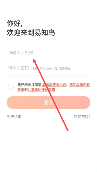 1、打开易知鸟老师版,点击【请输入手机号】。