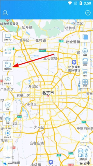 1、打开软件,进入首页,点击左侧“线路显示”: