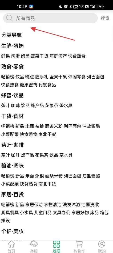 3、发现页面有详细分类导航,从生鲜到个护美妆等品类清晰,便于精准查找所需商品。