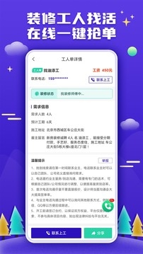 1、随时接活接单,工价透明、所见无虚,一键接单/找工人!