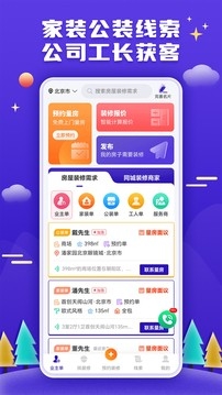 2、高品质业主装修需求,业主主动实时发布装修公司预约订单,简洁高效的装修接单App!