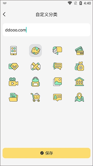 2、然后添上分类名,然后再选择一个图标,最后点击保存。