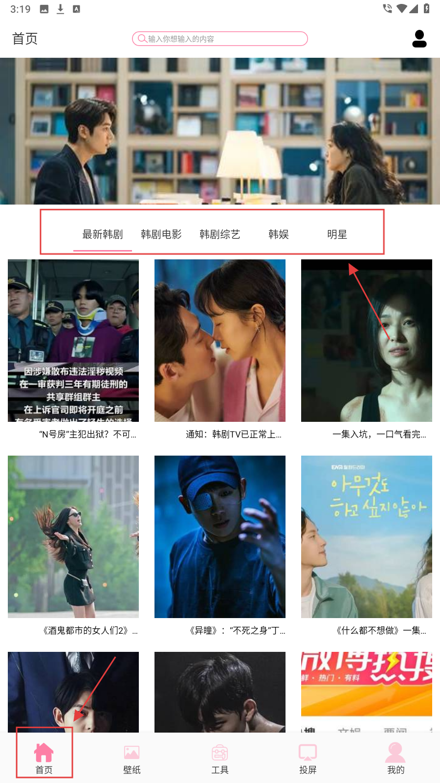 1、打开应用,在首页可通过最新韩剧、韩剧电影等分类标签,快速筛选出感兴趣的韩剧内容。