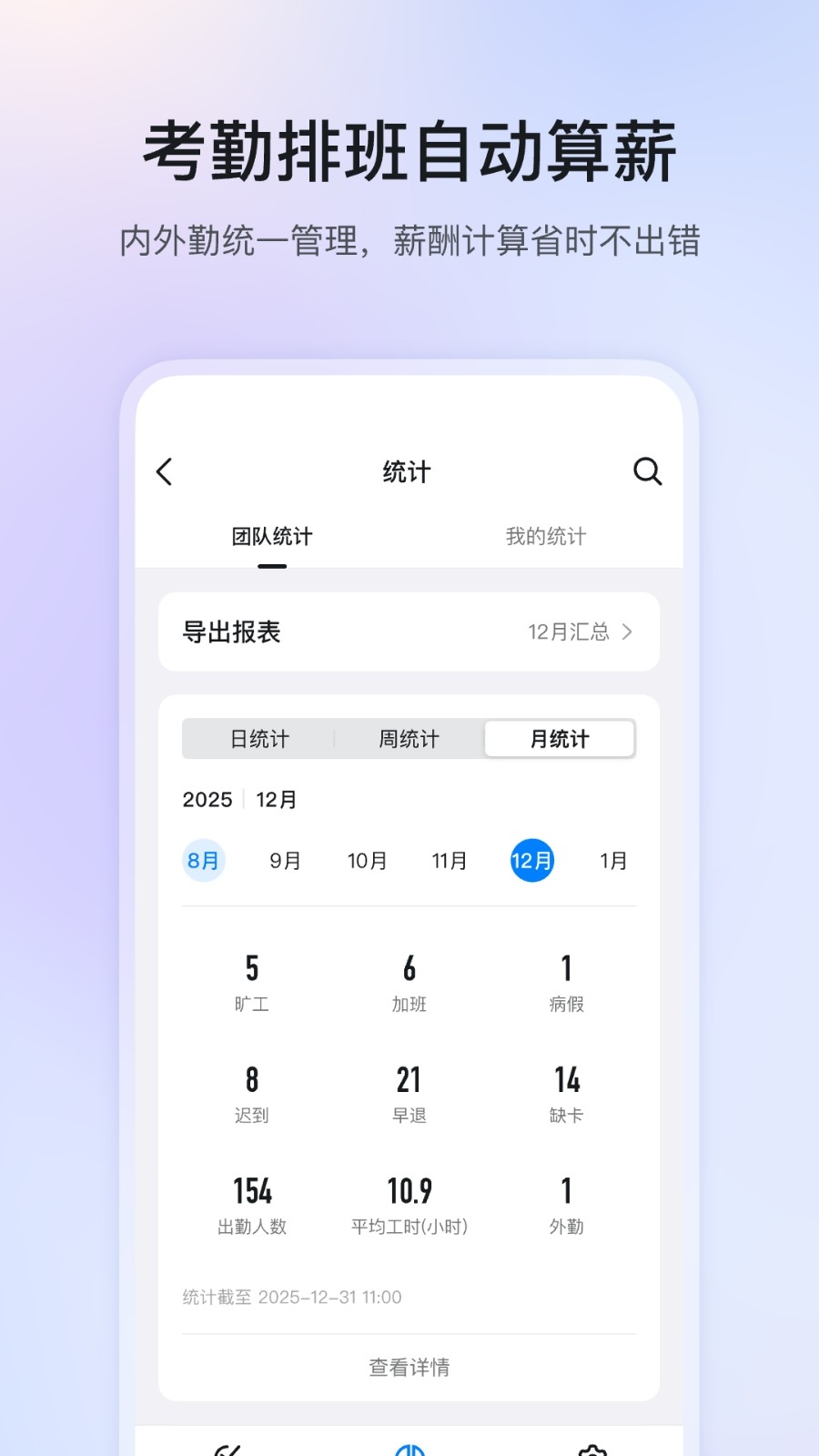 【智能办公应用】考勤、签到、审批、智能人事、公告、请假、报销、出差等OA功能,满足企业日常办公需求,同时全面支持接入企业自定义应用,让工作更简单。