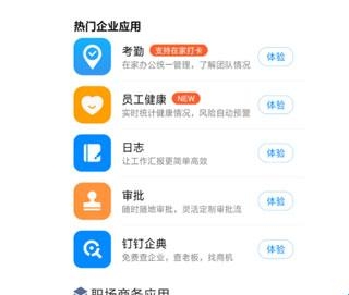 3、目前app上提供的功能主要有考勤,员工健康、日志审批等。