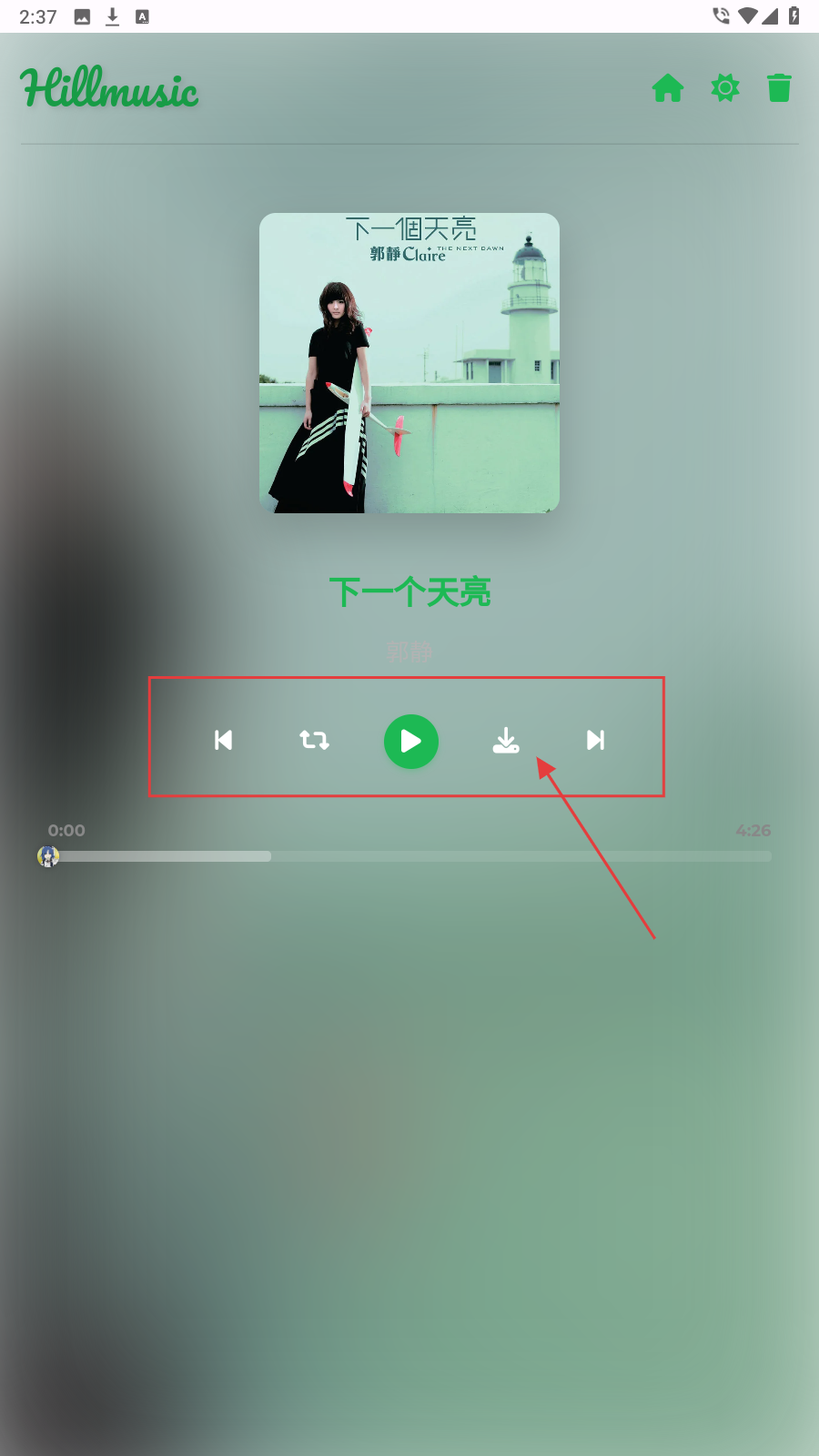 4、进入歌曲播放页面,可进行播放、暂停、切换歌曲等操作,还能点击下载按钮将歌曲下载至本地。