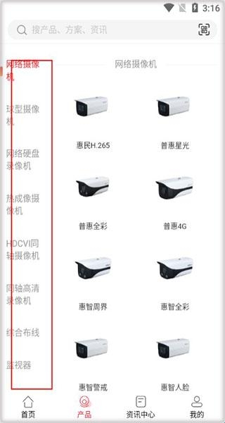 软件里面的安防产品有着清晰的分类,用户可根据分类查找。