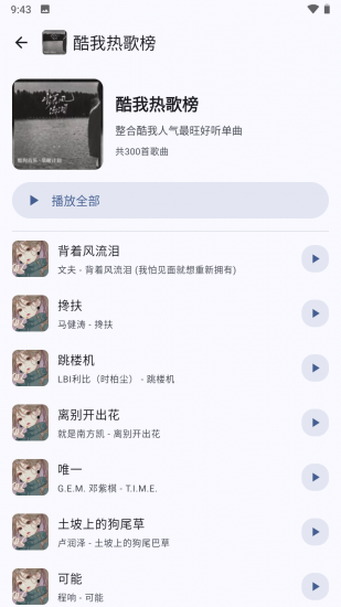 7、最新歌曲随时听:用户可以随时听取最新的歌曲,跟上音乐潮流。