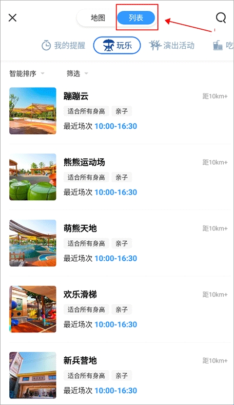 2、进到界面后,点击“列表”切换到游玩界面。