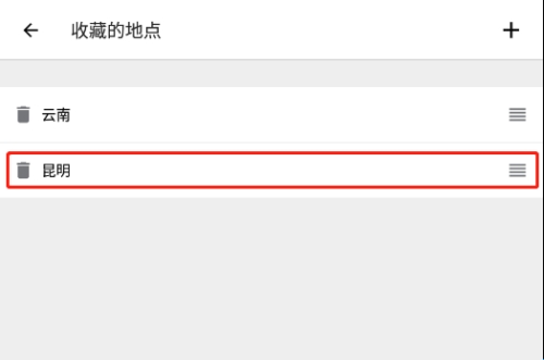 3、进入界面,可以看到自己之前添加的城市,选择需要删除的城市名称,点击城市名称签名的删除图标。